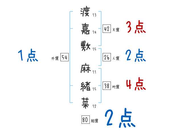 渡嘉敷麻緒菜さんの画数の鑑定結果