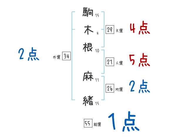 駒木根麻緒さんの画数の鑑定結果