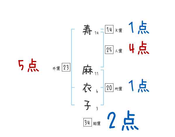 寿麻衣子さんの画数の鑑定結果