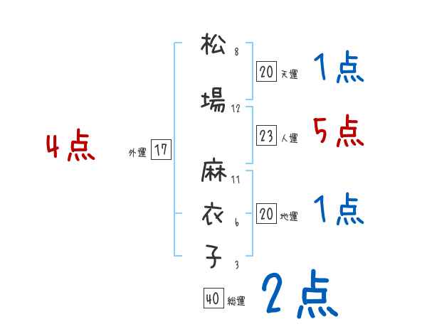 外運![]() | 松場麻衣子さんの外運は17画の4つ星!積極的な行動力。地位を気づき財産を手に入れる。純粋な心と直感力。 生活面を象徴する運勢です。外部から受ける影響力を表し、結婚運、家庭運や職場、環境への順応性を表します。 |
