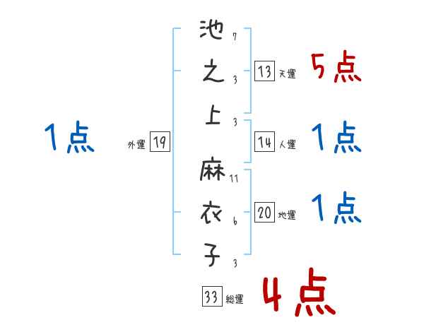 池之上麻衣子さんの画数の鑑定結果