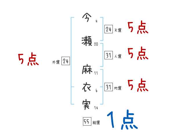 今瀬麻衣実さんの画数の鑑定結果