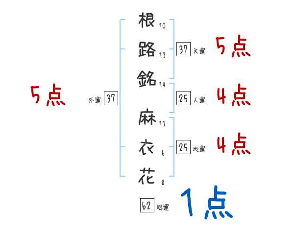 外運![]() | 根路銘麻衣花さんの外運は37画の5つ星!努力家で順応性に優れる。現実的な考え方ができ忠実に物事をこなす。 生活面を象徴する運勢です。外部から受ける影響力を表し、結婚運、家庭運や職場、環境への順応性を表します。 |