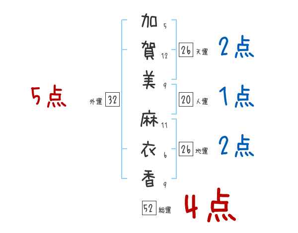 加賀美麻衣香さんの画数の鑑定結果