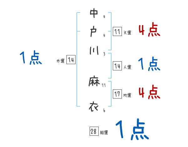 中戸川麻衣さんの画数の鑑定結果