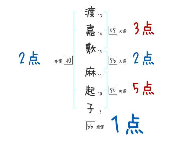 天運![]() | 渡嘉敷麻起子さんの天運は42画の3つ星!病気に注意。多芸であるが消極的でおとなしい。 家系が持つ宿命的な運勢を表します。祖先から受け継いだ苗字ですので自分の力が及びません。家柄を象徴します。 |