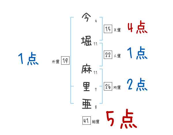 今堀麻里亜さんの画数の鑑定結果