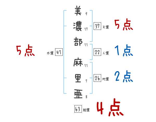 総運![]() | 美濃部麻里亜さんの総運は63画の4つ星!家庭運がよく順調な生活。温和な性格。 あなたの人生を表す1番重要な運勢です。生涯を通じて影響する総合運となり、主に50歳以降の晩年期に影響を及ぼします。 |