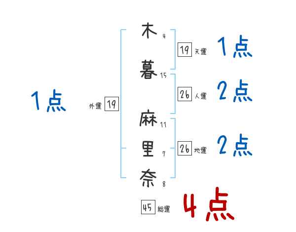 天運![]() | 木暮麻里奈さんの天運は19画の1つ星!優れた才能を持ちますが、協調性が足りないことも。周りの人と協力する事を意識しましょう。 家系が持つ宿命的な運勢を表します。祖先から受け継いだ苗字ですので自分の力が及びません。家柄を象徴します。 |
