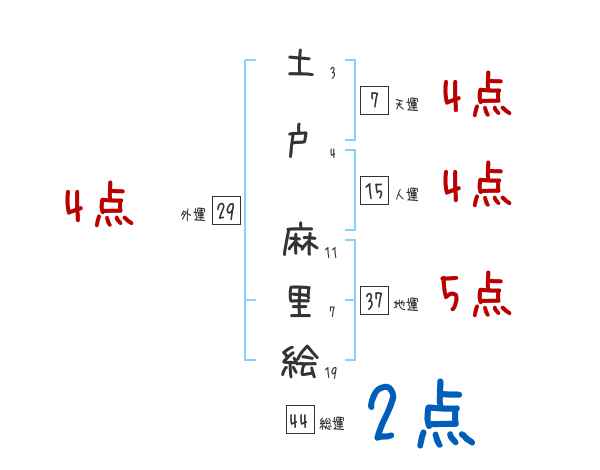 天運![]() | 土戸麻里絵さんの天運は7画の4つ星!強い意志や信念を持ち独立心が強い。自立する。 家系が持つ宿命的な運勢を表します。祖先から受け継いだ苗字ですので自分の力が及びません。家柄を象徴します。 |