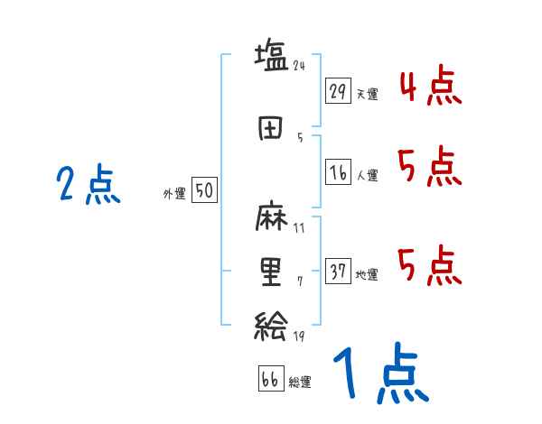 塩田麻里絵さんの画数の鑑定結果