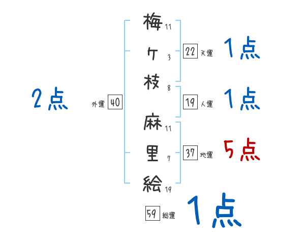 梅ヶ枝麻里絵さんの画数の鑑定結果