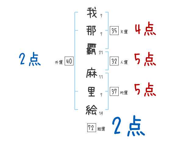 我那覇麻里絵さんの画数の鑑定結果