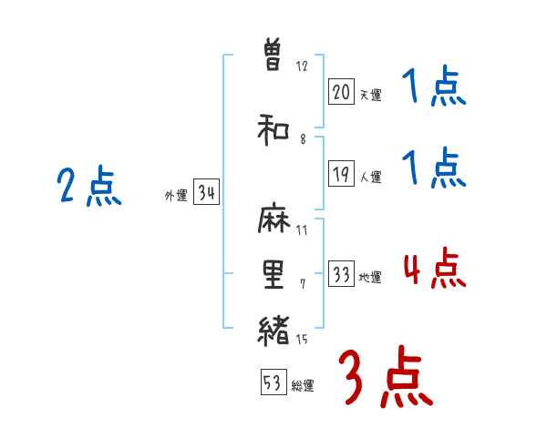 総運![]() | 曽和麻里緒さんの総運は53画の3つ星!やや見栄っ張りで虚栄心がある。散財に注意。 あなたの人生を表す1番重要な運勢です。生涯を通じて影響する総合運となり、主に50歳以降の晩年期に影響を及ぼします。 |