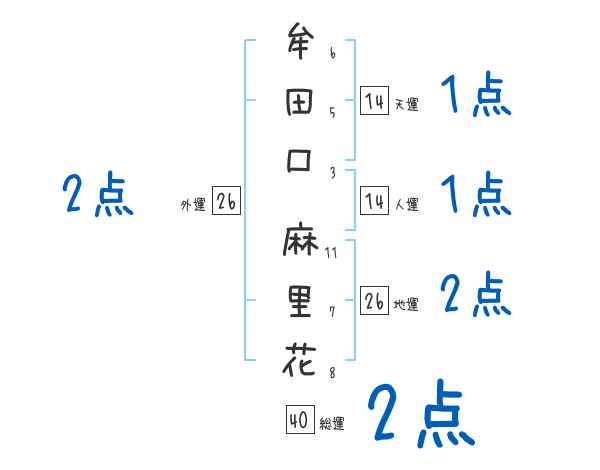 牟田口麻里花さんの画数の鑑定結果