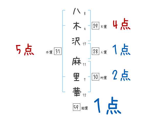 八木沢麻里華さんの画数の鑑定結果