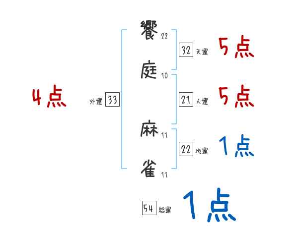 天運![]() | 饗庭麻雀さんの天運は32画の5つ星!柔軟性があり成功する。チャンスが多く金運が良い。 家系が持つ宿命的な運勢を表します。祖先から受け継いだ苗字ですので自分の力が及びません。家柄を象徴します。 |