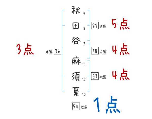 秋田谷麻須夏さんの画数の鑑定結果