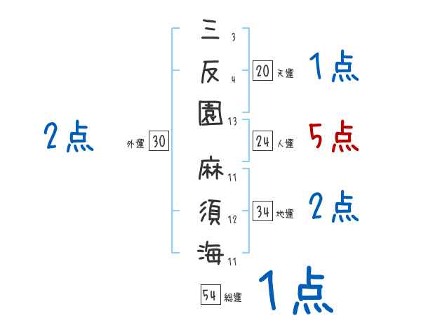外運![]() | 三反園麻須海さんの外運は30画の2つ星!浮き沈みの激しさに注意しましょう。 生活面を象徴する運勢です。外部から受ける影響力を表し、結婚運、家庭運や職場、環境への順応性を表します。 |