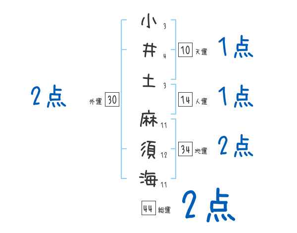 総運![]() | 小井土麻須海さんの総運は44画の2つ星!誠実で慎重な性格。物事を考えすぎないように注意しましょう。 あなたの人生を表す1番重要な運勢です。生涯を通じて影響する総合運となり、主に50歳以降の晩年期に影響を及ぼします。 |