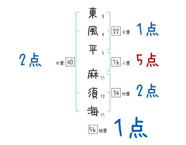 天運![]() | 東風平麻須海さんの天運は22画の1つ星!努力することが苦手ないっぽう手先が器用。芸術性にも優れる。 家系が持つ宿命的な運勢を表します。祖先から受け継いだ苗字ですので自分の力が及びません。家柄を象徴します。 |