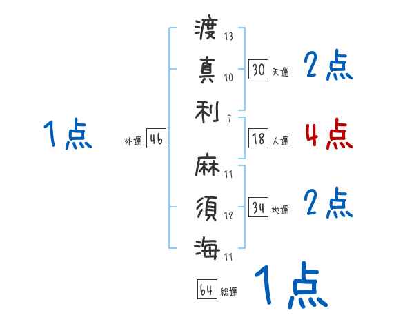 渡真利麻須海さんの画数の鑑定結果