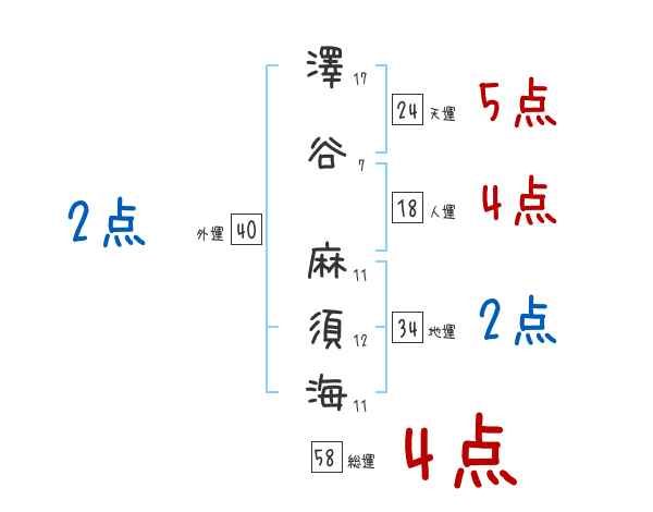 天運![]() | 澤谷麻須海さんの天運は24画の5つ星!家庭運が良く順調な人生。金運にも恵まれる。 家系が持つ宿命的な運勢を表します。祖先から受け継いだ苗字ですので自分の力が及びません。家柄を象徴します。 |