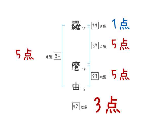 外運![]() | 羅麿由さんの外運は24画の5つ星!家庭運が良く順調な人生。金運にも恵まれる。 生活面を象徴する運勢です。外部から受ける影響力を表し、結婚運、家庭運や職場、環境への順応性を表します。 |