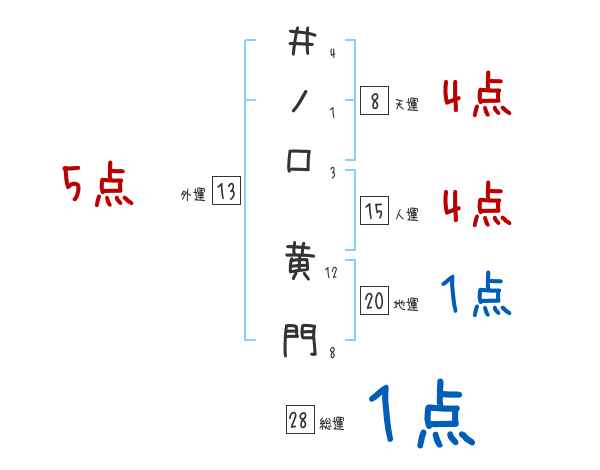 総運![]() | 井ノ口黄門さんの総運は28画の1つ星!家庭環境に注意。スポーツで活躍できる能力があるかも。 あなたの人生を表す1番重要な運勢です。生涯を通じて影響する総合運となり、主に50歳以降の晩年期に影響を及ぼします。 |