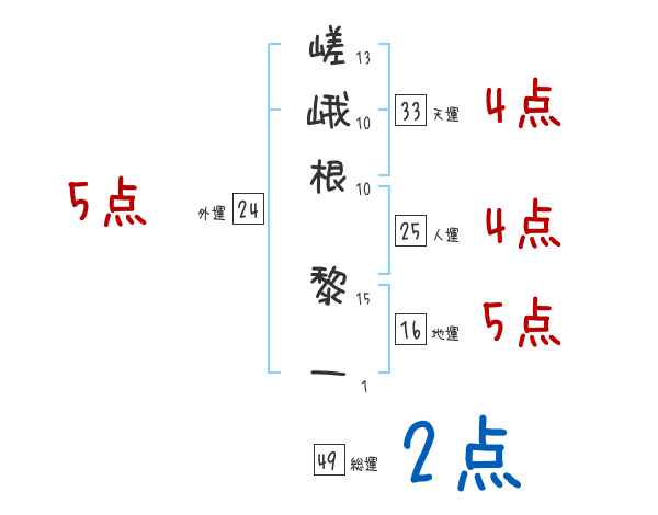 地運![]() | 嵯峨根黎一さんの地運は16画の5つ星!人望が厚く大きく発展する。逆転成功が見える。 個性を表す基礎的な運勢です。性格形成や対人関係、行動力など家庭環境に影響されます。主に誕生してから20歳くらいまでの若年期の運勢を表します。 |