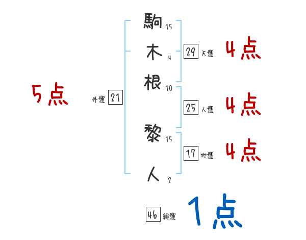 駒木根黎人さんの画数の鑑定結果