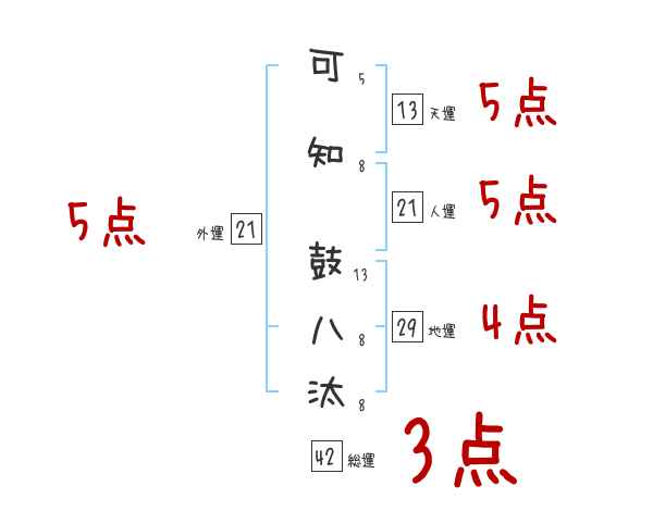 天運![]() | 可知鼓八汰さんの天運は13画の5つ星!才能に恵まれ人気がある。名声を手に入れる。円満な人生。 家系が持つ宿命的な運勢を表します。祖先から受け継いだ苗字ですので自分の力が及びません。家柄を象徴します。 |