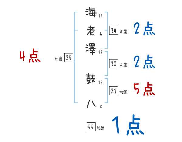 海老澤鼓八さんの画数の鑑定結果
