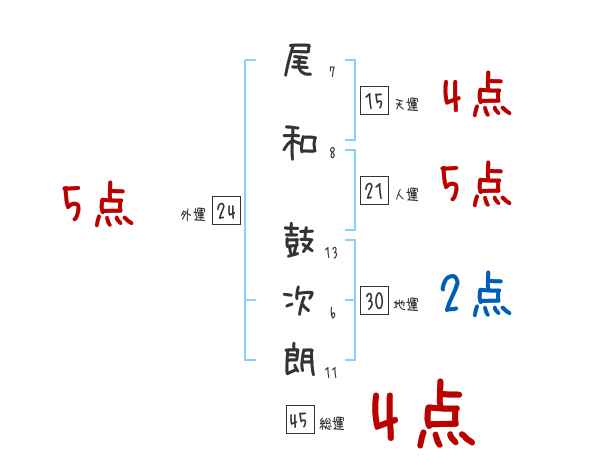尾和鼓次朗さんの画数の鑑定結果