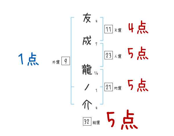 総運![]() | 友成龍ノ介さんの総運は32画の5つ星!柔軟性があり成功する。チャンスが多く金運が良い。 あなたの人生を表す1番重要な運勢です。生涯を通じて影響する総合運となり、主に50歳以降の晩年期に影響を及ぼします。 |