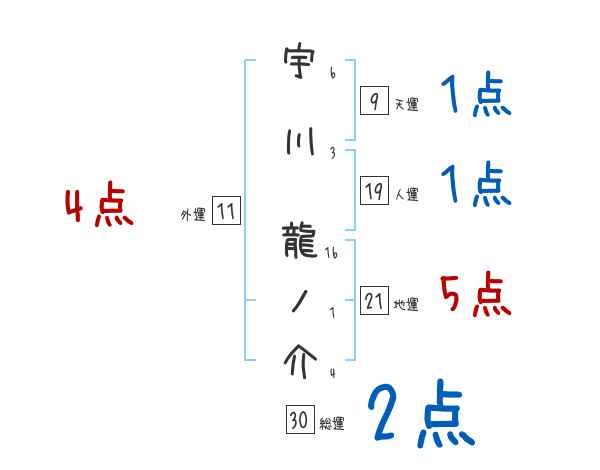 宇川龍ノ介さんの画数の鑑定結果