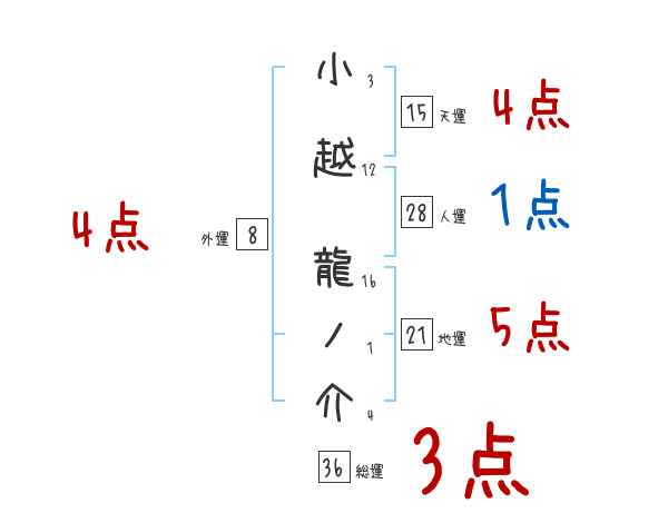 小越龍ノ介さんの画数の鑑定結果