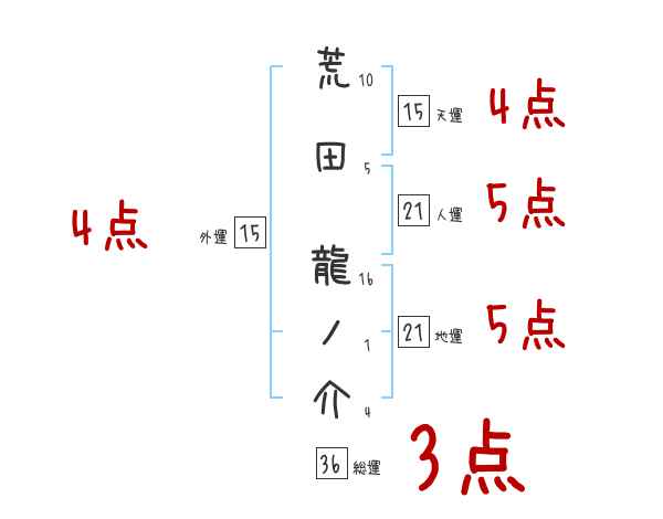 荒田龍ノ介さんの画数の鑑定結果