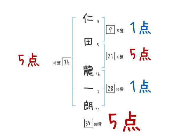 仁田龍一朗さんの画数の鑑定結果