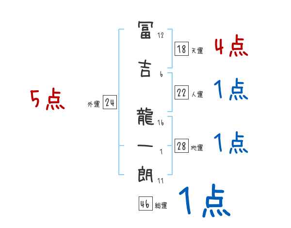 冨吉龍一朗さんの画数の鑑定結果