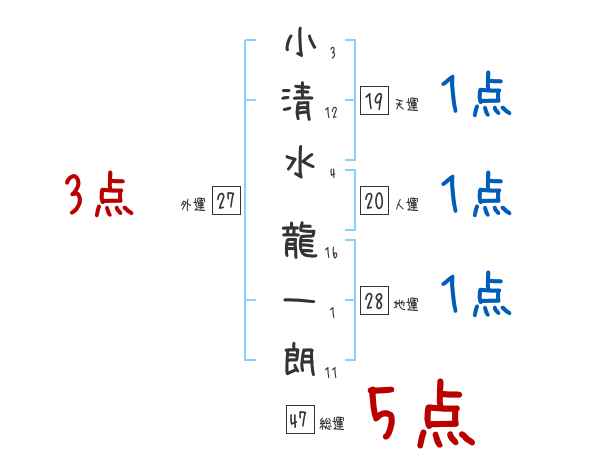 小清水龍一朗さんの画数の鑑定結果