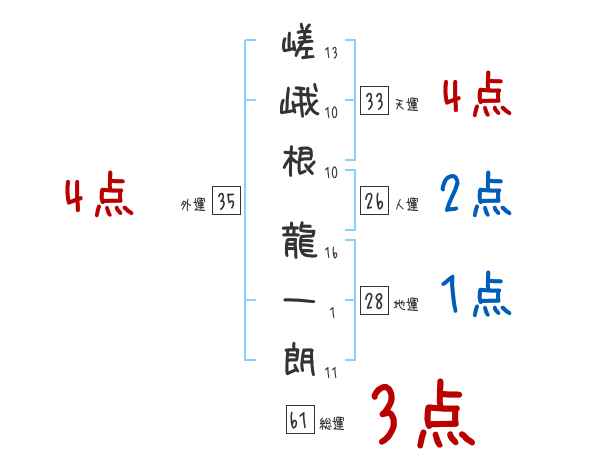 嵯峨根龍一朗さんの画数の鑑定結果