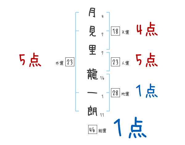 月見里龍一朗さんの画数の鑑定結果