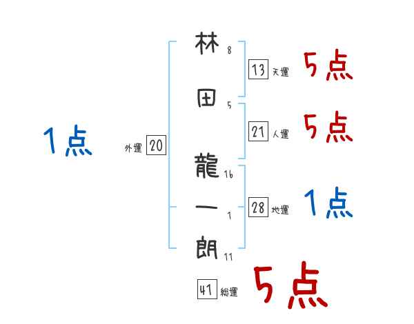 林田龍一朗さんの画数の鑑定結果
