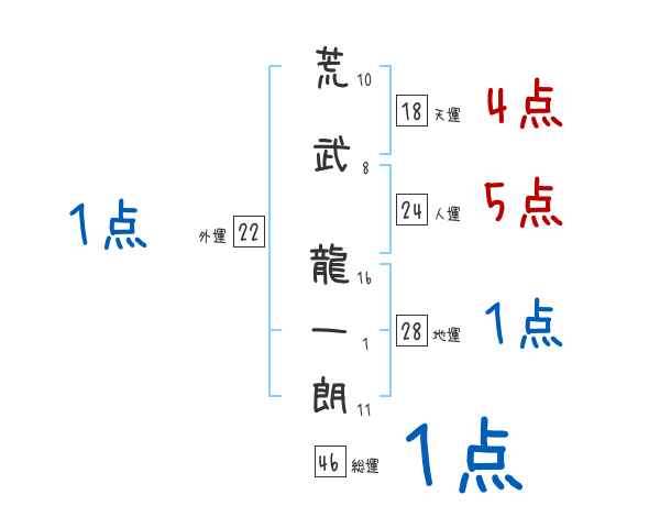 荒武龍一朗さんの画数の鑑定結果