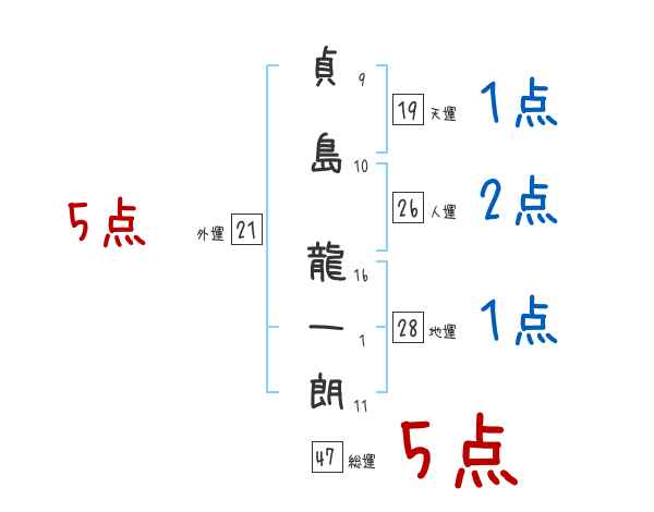 総運![]() | 貞島龍一朗さんの総運は47画の5つ星!実力が開花し発展する円満な人生。財に恵まれる。 あなたの人生を表す1番重要な運勢です。生涯を通じて影響する総合運となり、主に50歳以降の晩年期に影響を及ぼします。 |