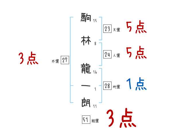 駒林龍一朗さんの画数の鑑定結果