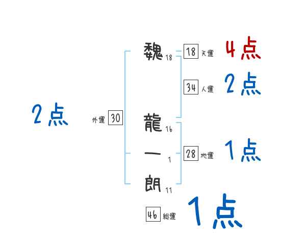 魏龍一朗さんの画数の鑑定結果