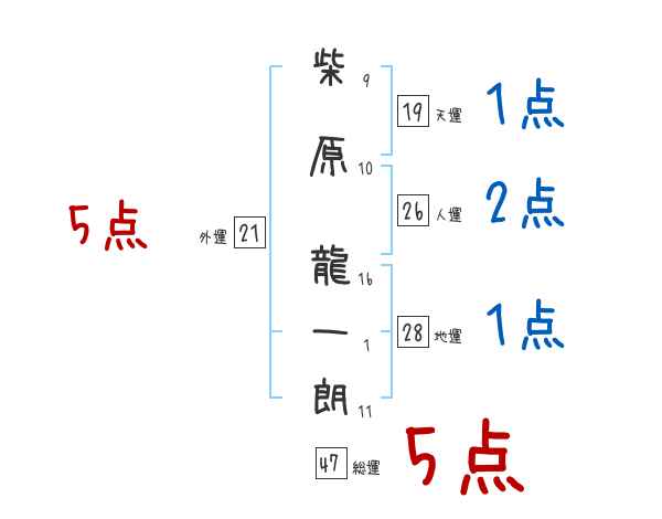 総運![]() | 柴原龍一朗さんの総運は47画の5つ星!実力が開花し発展する円満な人生。財に恵まれる。 あなたの人生を表す1番重要な運勢です。生涯を通じて影響する総合運となり、主に50歳以降の晩年期に影響を及ぼします。 |