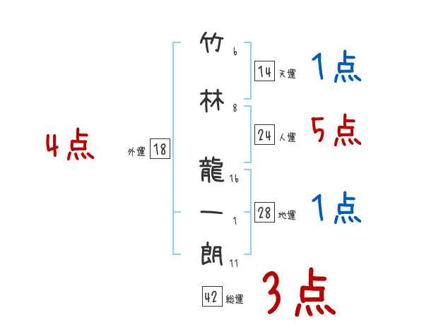 竹林龍一朗さんの画数の鑑定結果